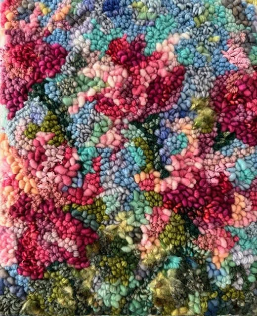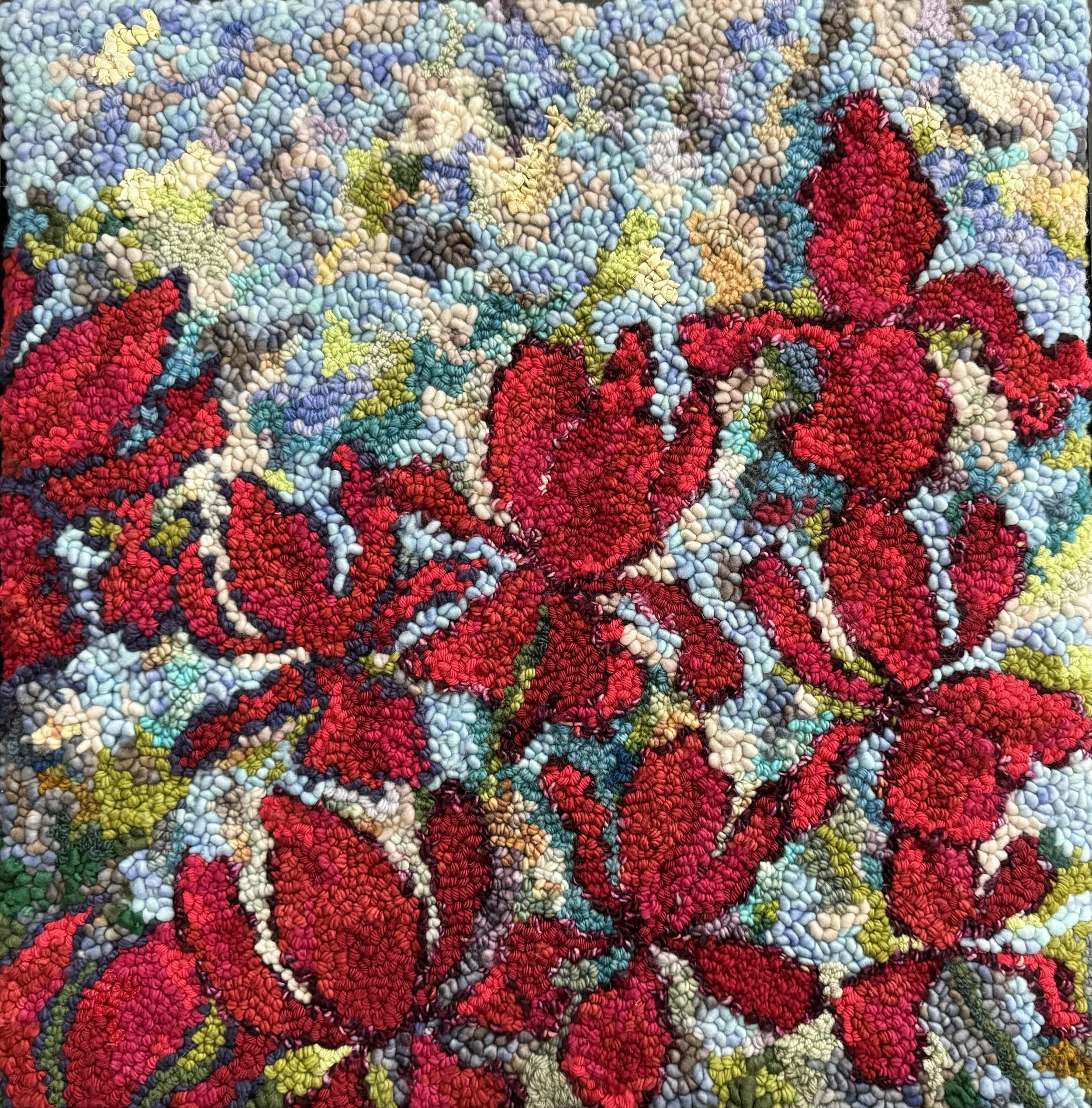 Contemporary hooked rugs that combine abstract and impressionism to express the organic lines and beauty of botanicals and landscapes across North America. Each piece is made with new or recycled wool, silk, cotton, or rayon to capture nature’s essence. Maggie creates art with soul that reflects joy and captures the energetic movement found in nature.
